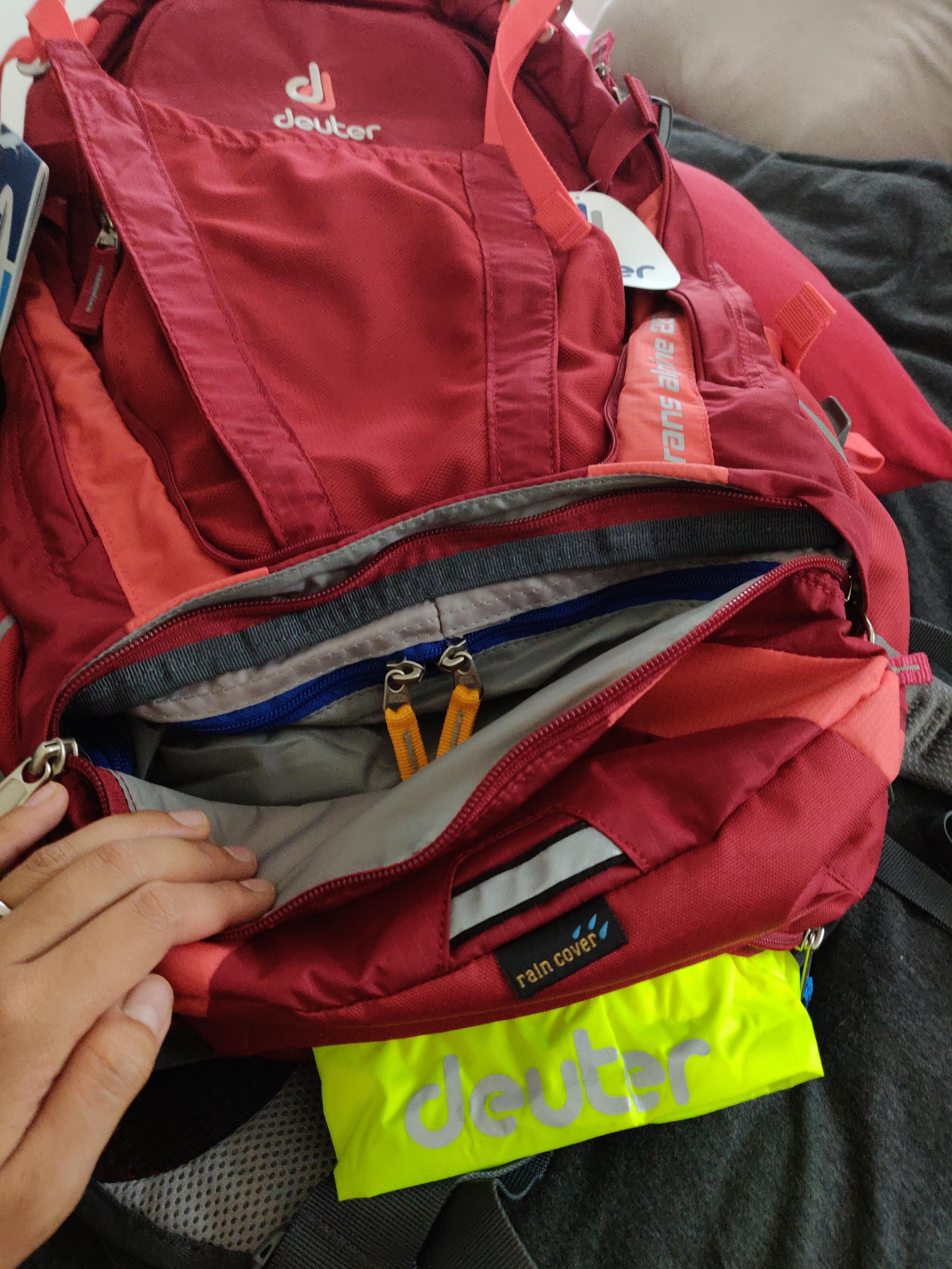 I don’t know what to expect with this one now that I’m just blown away by the Deuter. I can imagine myself keeping it if it is somewhat packable and I want a simpler bag to use without the bells and whistles of the Deuter’s waist pockets, back panel, and helmet pouch. But if I want to be more minimalist, I should return it if it doesn’t beat the Deuter. We’ll see…